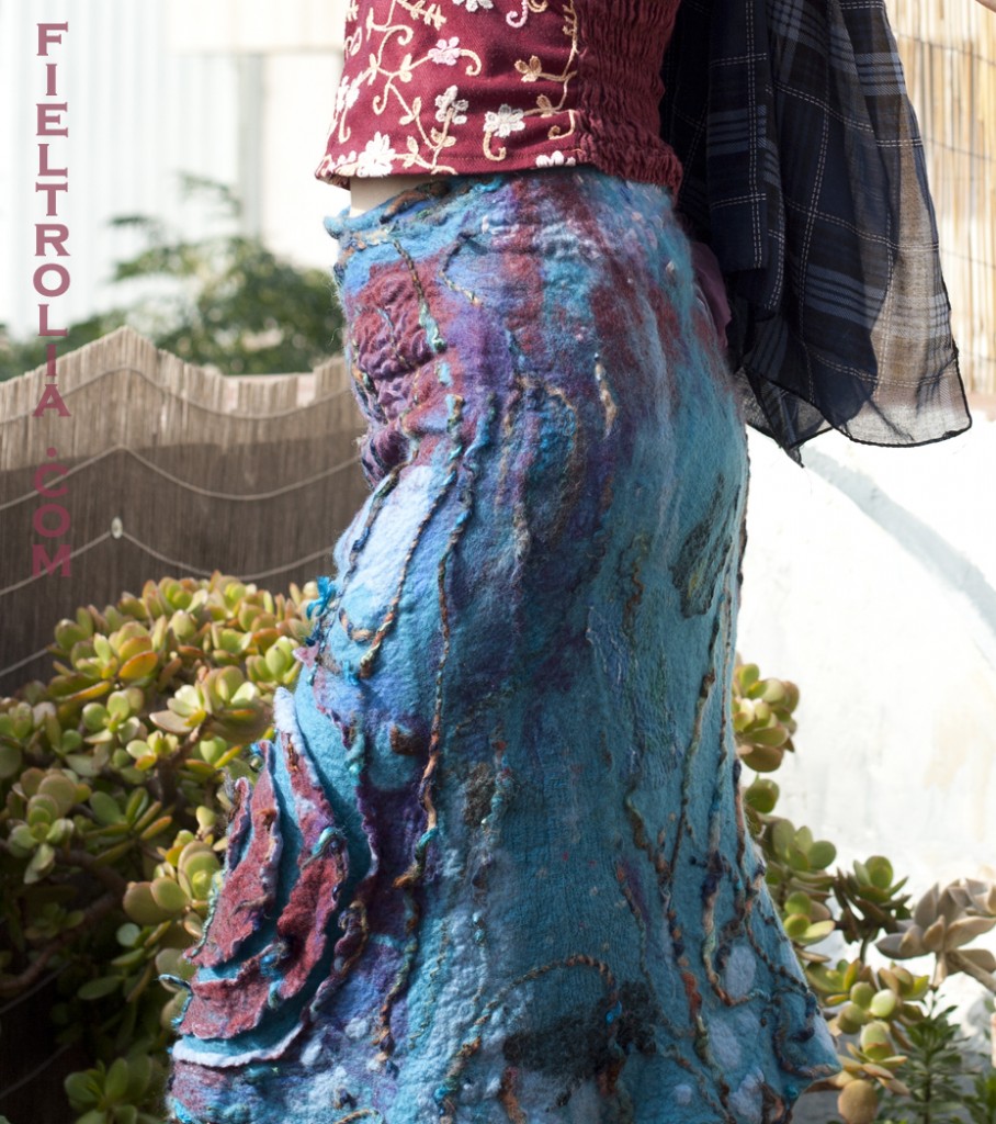 Falda de fieltro artesasal y nunofieltro con seda.